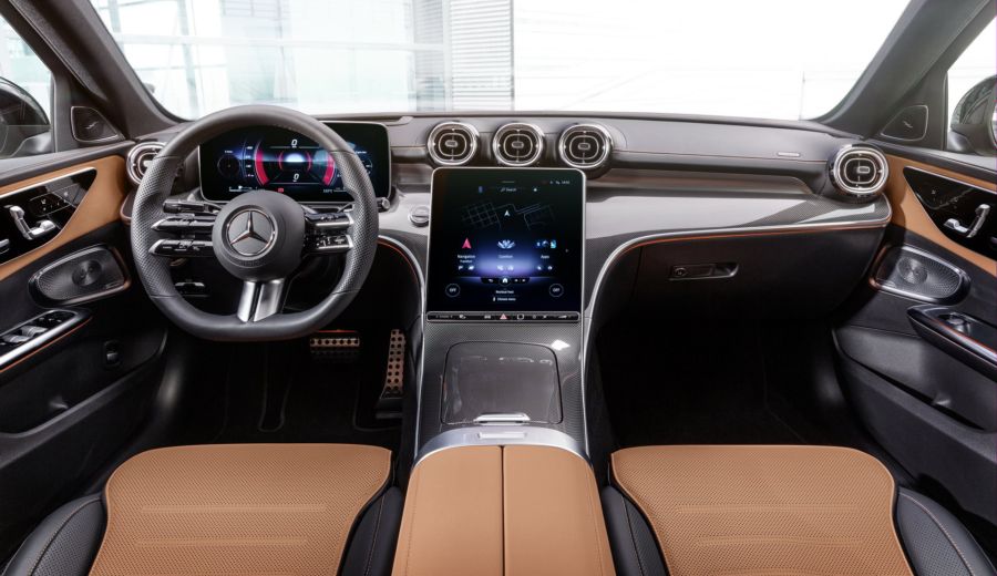 En el interior, adopta la segunda generación del sistema de información y entretenimiento MBUX que estrenó el Clase S. Tiene una doble pantalla en el instrumental, de 10,25 y 12,3 pulgadas, y otra pantalla multimedia en la consola central que puede ser de 9,5 u 11,9 pulgadas. El volante lo toma del Clase E, al igual que el diseño de la plancha de abordo en general.
